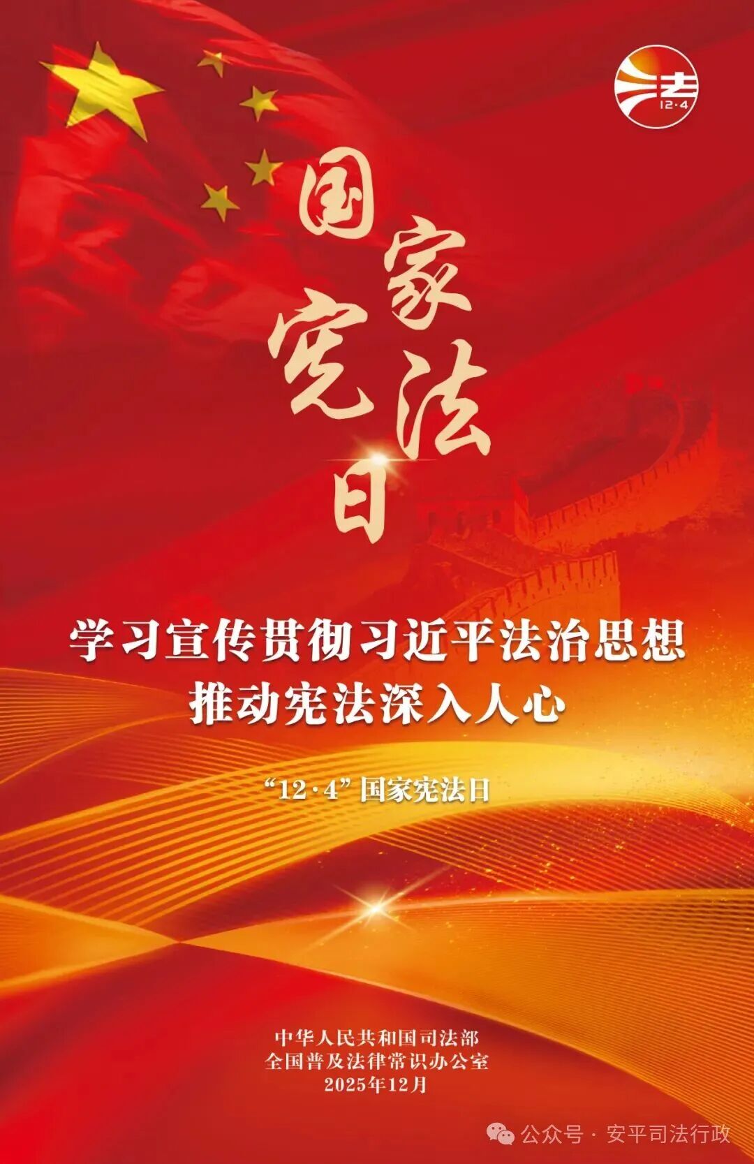 2025年12月4日是第十二个国家宪法日,12月1日至7日第八个“宪法宣传周”,2025年“宪法宣传周”主题:学习宣传贯彻习近平法治思想,推动宪法深入人心。